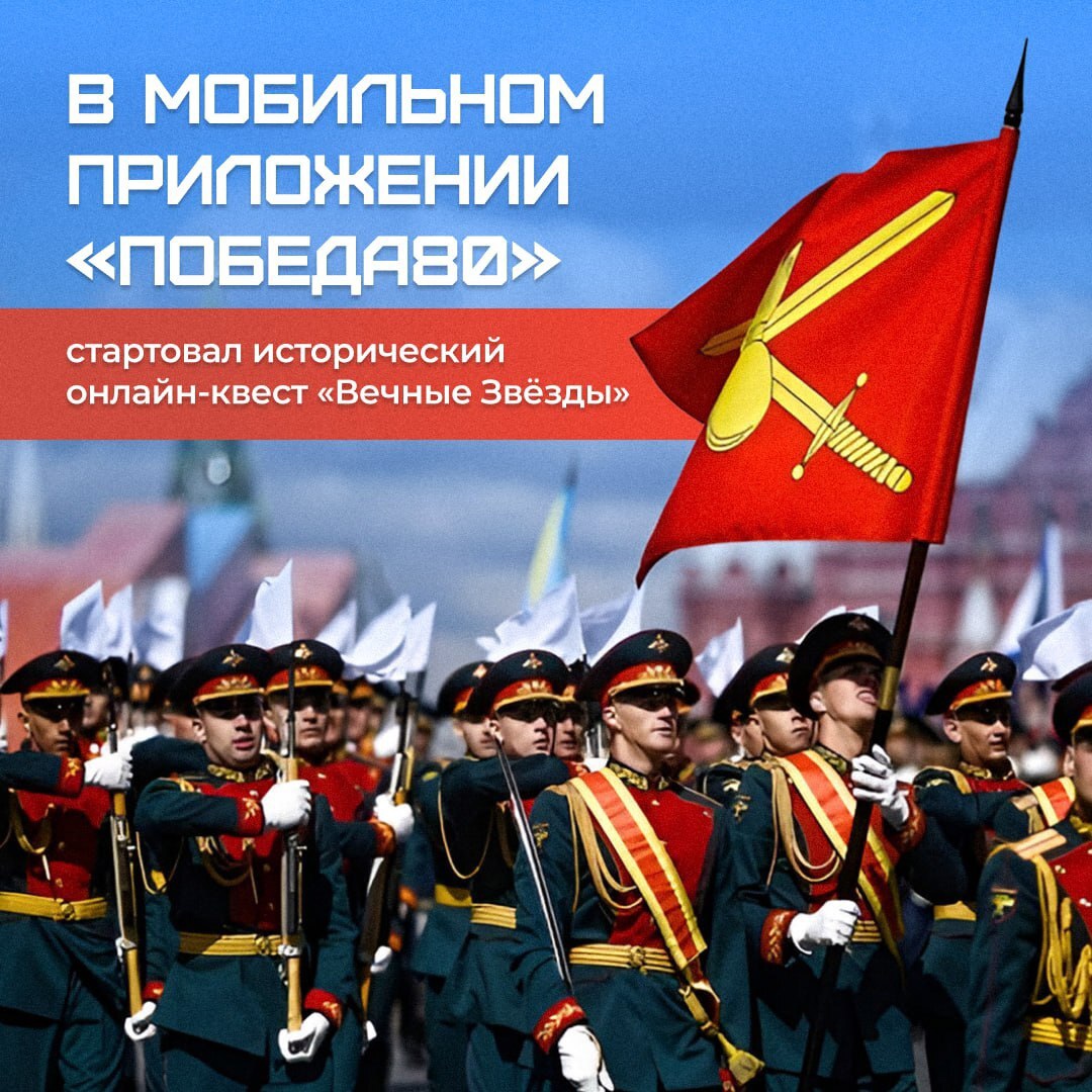 ⚡В мобильном приложении «Победа80» стартовал исторический онлайн-квест «Вечные Звёзды». Теперь вы сможете узнать больше о памятных местах Великой Отечественной войны и выиграть билет на парад Победы 9 мая в Москве