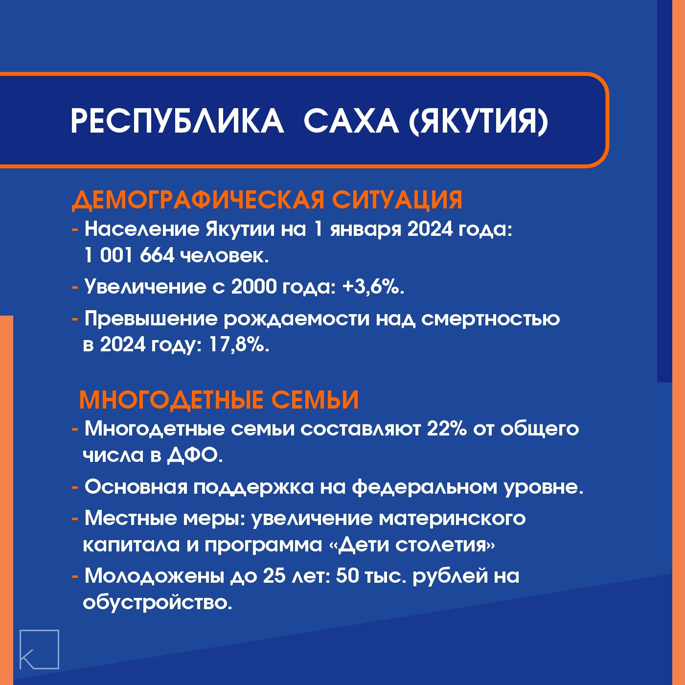 ✔️В Якутии демографическая ситуация благоприятнее, чем в большинстве субъектов России.