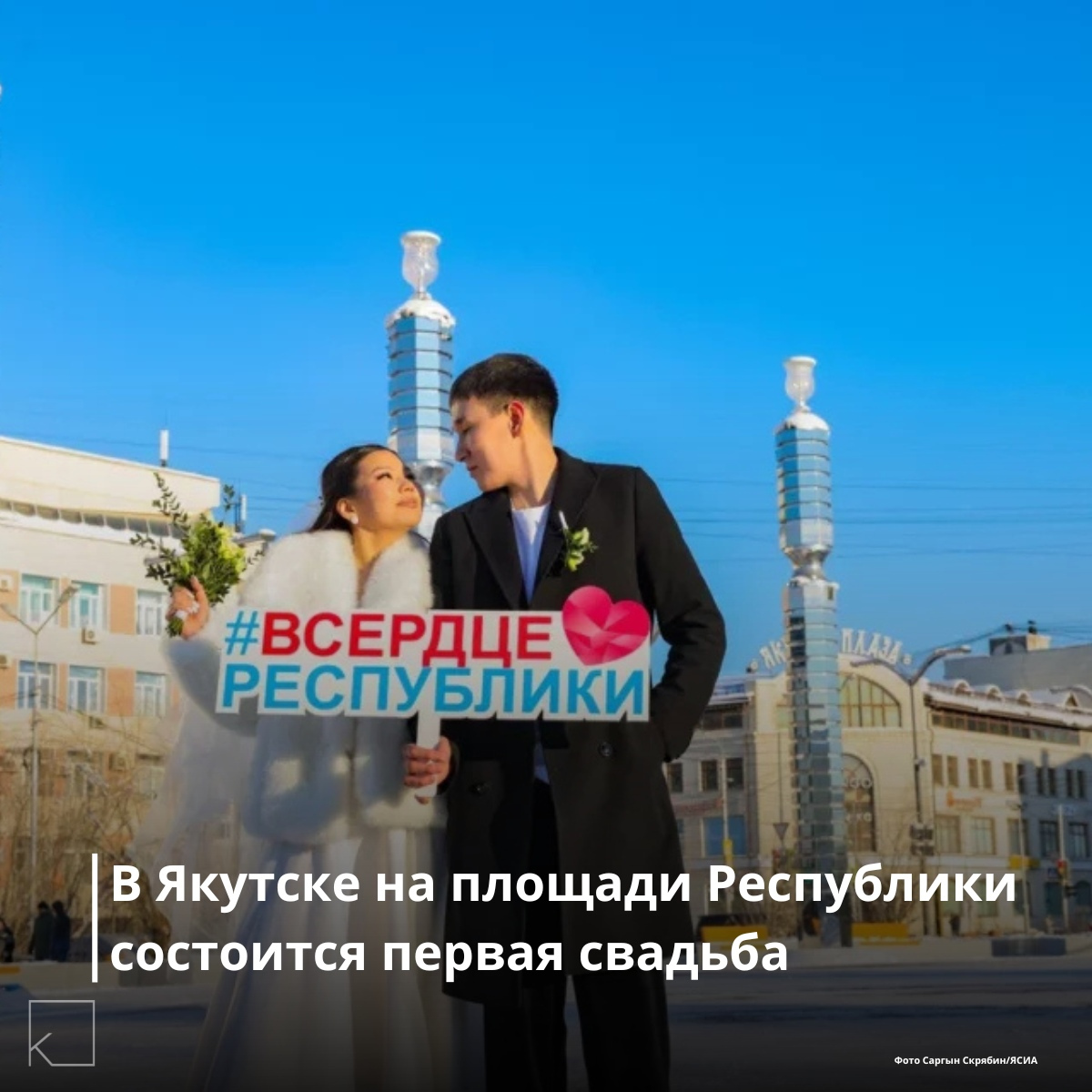 7 июня на площади Республики состоится первая церемония бракосочетания. Свою свадьбу заключат Василина Шахурдина и Борис Трофимов. Во время прямой линии, состоявшейся 27 апреля, пара пригласила на торжество Главу Якутии.