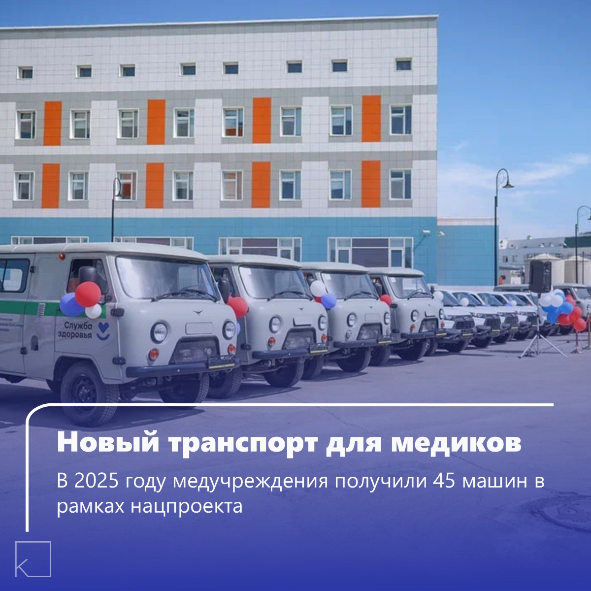 17 автомобилей (УАЗ и Лада-Нива) переданы районным больницам, включая отдалённый Усть-Янский улус. Ранее в феврале этого года медучреждения получили 28 машин. Весь транспорт приобретен благодаря программе модернизации первичного звена в рамках нацпроекта «Продолжительная и активная жизнь», инициированного Президентом.