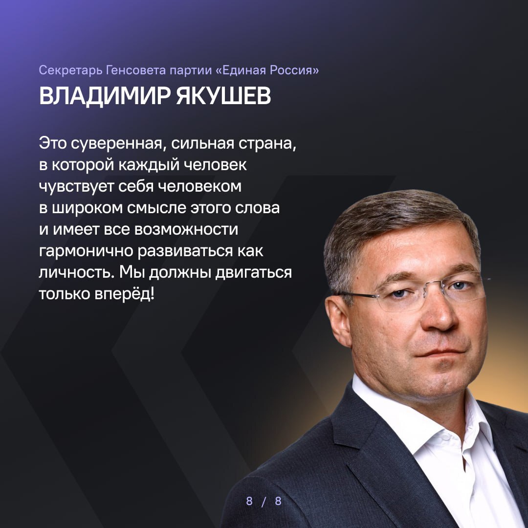 «Мы должны двигаться только вперёд. Доказать всему миру, что сегодня разговаривать с нами с позиции силы – непродуктивно и неэффективно. И, если кто-то нас решил проверить на прочность, в очередной раз мы просто покажем всему миру, что умеем бороться с трудностями. Мы – единая страна, единый народ и умеем чётко, жёстко, эффективно, и, самое главное, понятно отвечать на все те вызовы, которые перед нами стоят», – сказал Якушев.