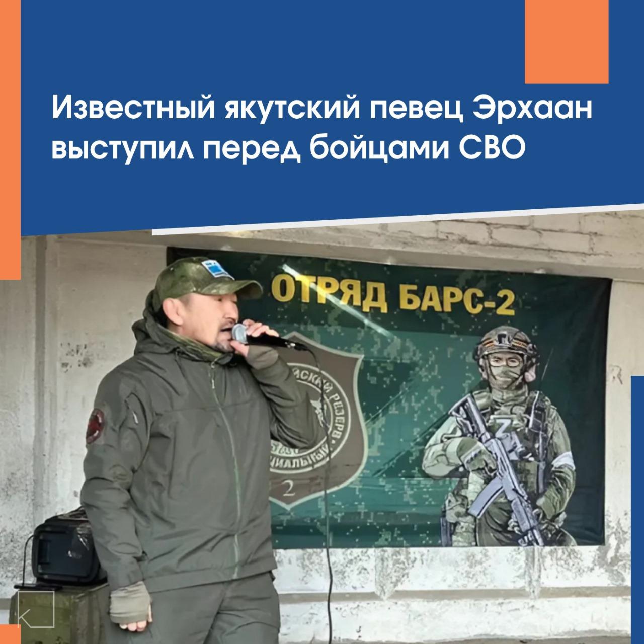 Известный якутский певец Эрхаан дал 14 концертов для бойцов в зоне специальной военной операции. Артист исполнил свои авторские песни для защитников Родины из Якутии.
