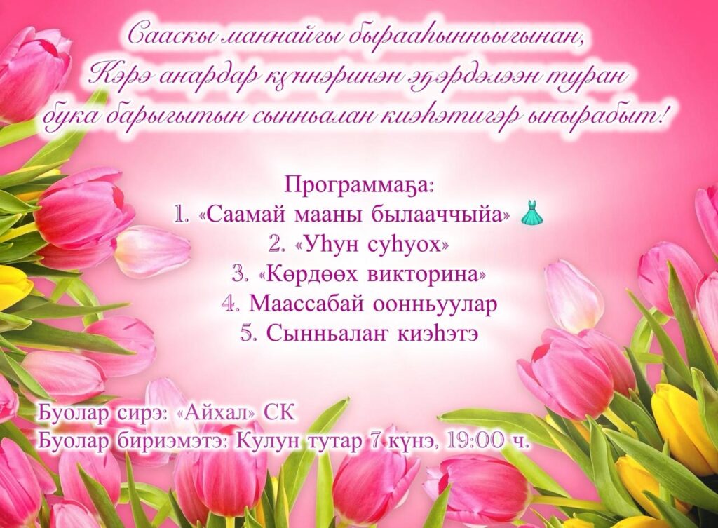 Сааскы маҥнайгы бырааһынньыгынан, Кэрэ аҥардар күннэринэн эҕэрдэлээн туран умнуллубат Күөн күрэстээх тэрээһин буолан ааста ! 🌸💐