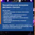 V Международный фестиваль классической музыки «Кантата» пройдет с 12 по 15 июня 2025 года. Откроет его Всероссийская акция ко Дню России в 10 регионах — от Калининграда до Владивостока. Торжественное закрытие состоится 15 июня и завершится грандиозным гала-концертом под открытым небом.