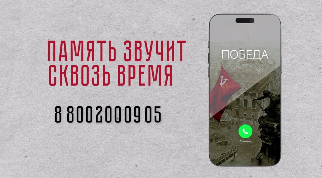 До 15 мая по номеру 8 800 200-0905 вас будут ждать архивные аудиозаписи, посвященные 80-летию со дня окончания Великой Отечественной войны.
